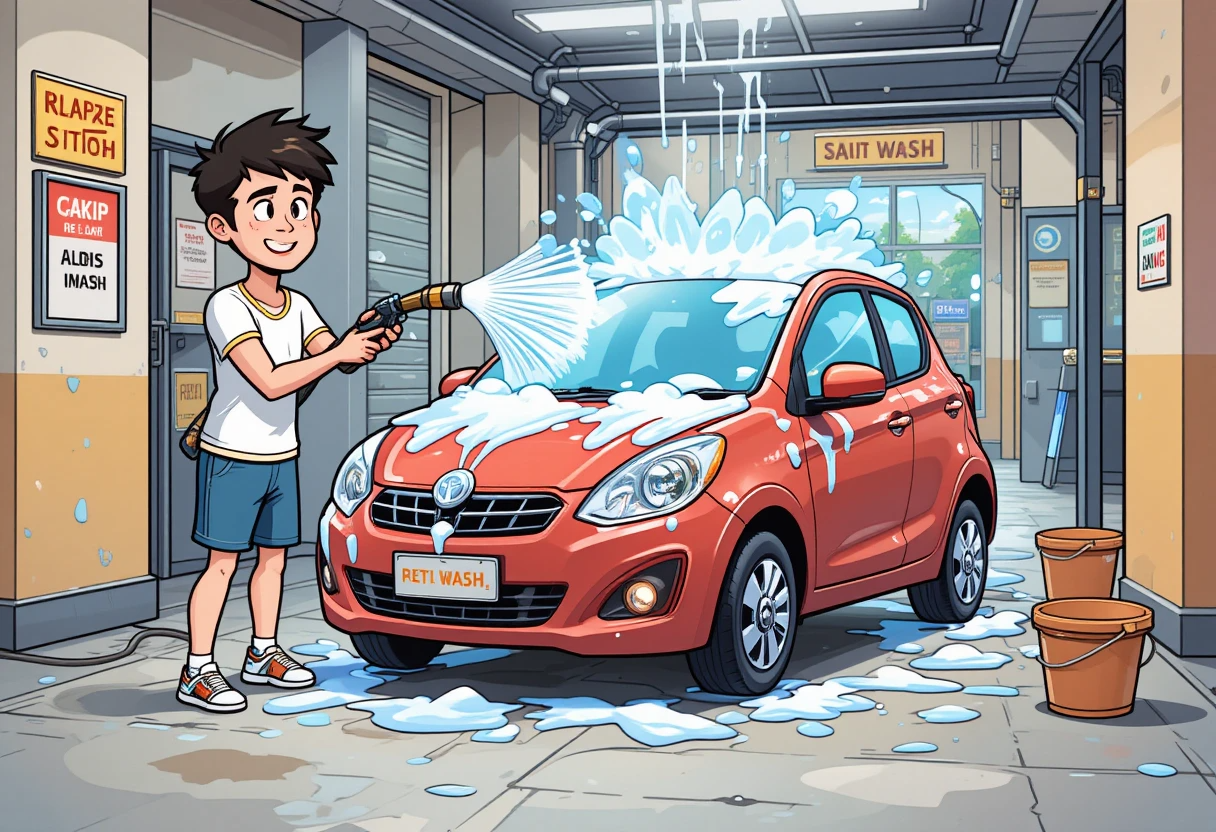 - 1단계: 고압수로 전체 먼지 제거 (1~2분) - 2단계: 폼건 또는 스펀지 세정 (5분) - 3단계: 헹굼 → 휠세정 → 드라잉 (5~10분)