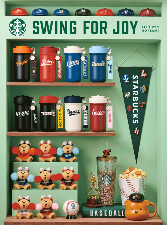 ✅ 핵심 상품: 구단별 베어리스타 키체인, 캡 머그, 캔쿨러 텀블러 등