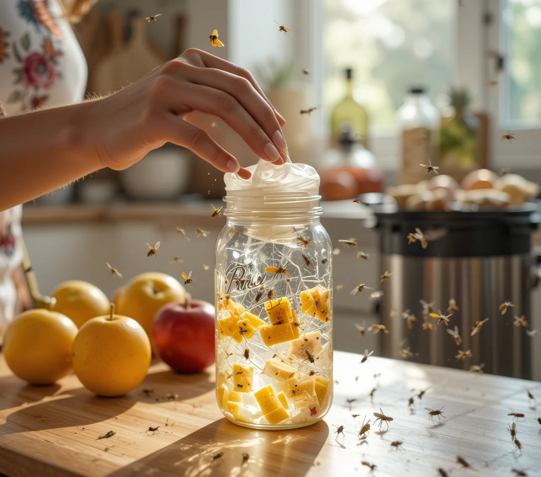 - 식초 트랩 만들기: 종이컵에 식초 + 설탕 + 물을 섞고 랩을 씌운 후 작은 구멍을 내면 초파리가 빠져나오지 못하고 잡힙니다.