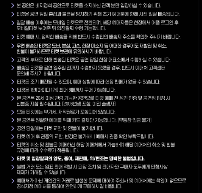 - 비공식 거래는 절대 금지, 공식 예매처만 이용해 주세요