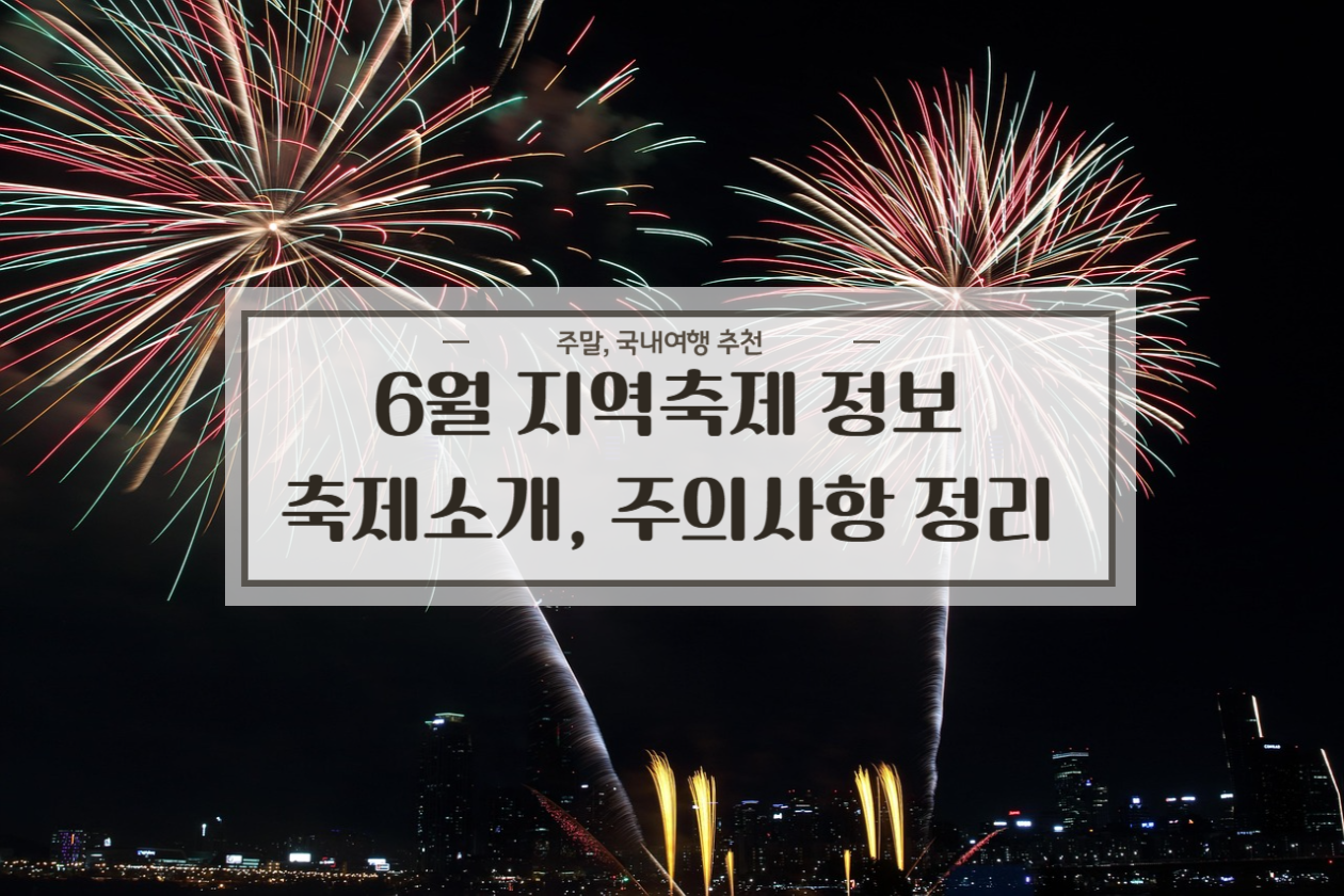 6월은 초여름의 기운이 완연하게 퍼지는 시기로, 자연과 사람이 함께 어우러지는 축제들이 전국 곳곳에서 펼쳐집니다. 이번 달에는 가족, 연인, 친구 누구와 함께여도 만족할 만한 축제 일정들이 가득하니, 짧은 여행과 함께 특별한 추억을 만들어보시는 걸 추천드려요! 본격적으로 여름이 시작되면서 자외선 지수가 강한 날씨가 지속되고 있으니 꼭 외출할 때 자외선 차단제를 바르시길 바랍니다^^